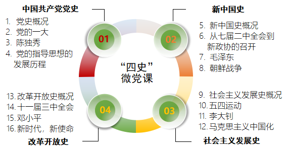 为了激发学生学习“四史”的兴趣,思政课老师在上课前进行了学习需求调研,了解学生对学习内容、形式的要求,在此基础上设计教学框架,每个史别设计4节微党课,包括该史别的概况、重要会议、重要任务和典型成果,希望通过简短的微党课给学生呈现一个点面结合的“四史”知识图景。教学形式以梳理脉络和分享故事为主,让学生既能够从面上了解该史别的概况,又能够结合重要会议和人物介绍,对历史有更深入的了解。