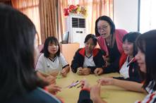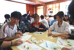在完成了团队破冰后,金老师通过几个小游戏迅速地炒热了现场氛围,同学们也逐渐卸下心灵围墙。通过OH卡片游戏,讲述了自己在开学后的内心感受。大部分同学远离家乡,感到寂寞孤独,原本有班主任老师和其他同学的陪伴还好,可是随着假期来临,原本热热闹闹的学校转瞬变得冷冷清清,思乡之情更加强烈。金老师了解了同学们的内心感受后,马上调整游戏内容,通过一次次的卡牌组合,一组组的讲述和互动,同学们对家的思念逐渐排解,活动中的欢乐氛围更加浓烈。之后金老师又一次打乱了原本的小组,让2个班的同学相互组合,以相同爱好的颜色为线索组成小组,在这基础上进行小组的介绍,这大大强化了同学们的适应能力和团队合作能力。在长达近3个小时的活动后,不少同学都高呼“不过瘾”,此次活动在同学们热烈的掌声中顺利结束。